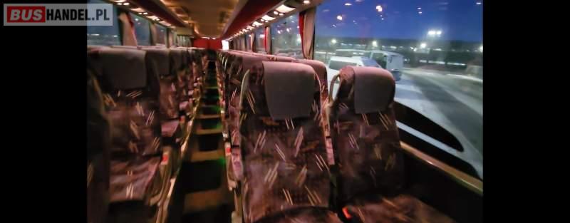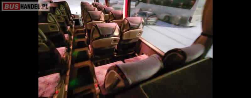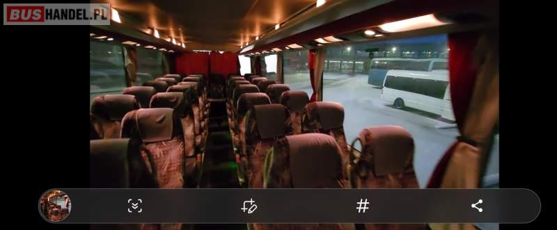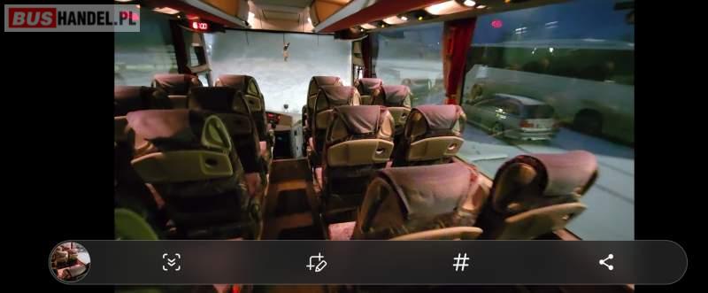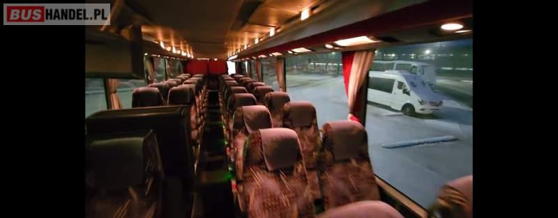 Wyposażenie: video, WC, lodówka, caffebar, kabina sypialna, fotele odchylane, oświetlenie indywidualne, nawiewy dyszowe, siateczki, ABS, ASR, tempomat, retarder, telefon, nawigacja, CD, podnóżki, stoliczki, mikrofon, klimatyzacja, radio, wyświetlacz matrix, sejf, regulacja wysokości nadwozia, podwójne szyby boczne, wspomaganie kierownicy, elektryczne lusterka, fotele odchylane i rozsuwane, DVD, ogrzewanie stacjonarne, ESP